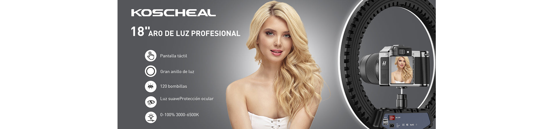 KOSCHEAL anillo de luz de relleno, con una luz suave y duradera, que realza el brillo de tus ojos, perfecto para grabaciones de vídeo, transmisiones en vivo, etc.