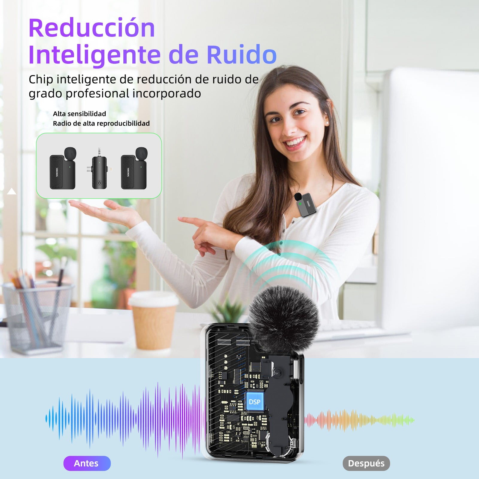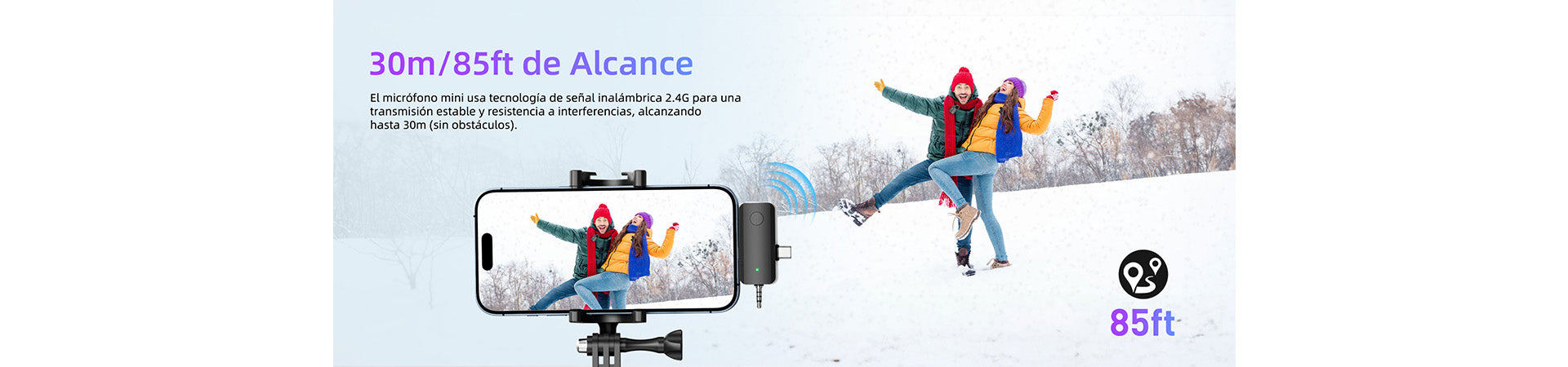 Utilizes advanced A-series digital transmission and near-zero latency codecs. Professional smart noise reduction chip, combined with foam and plush windshields, minimizes wind noise and plosives, enhancing sound quality for your recordings with up to 30-meter range.