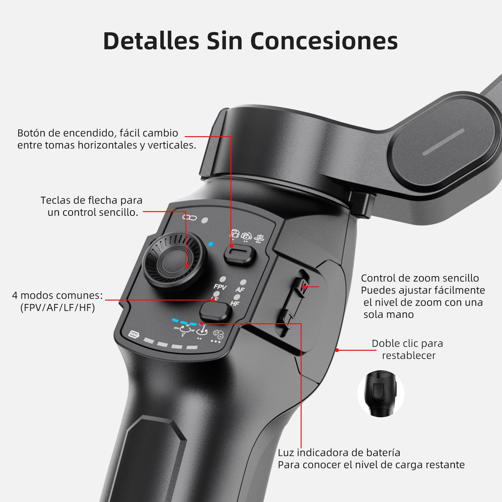 Quickly and easily check battery level, system indicator status, and gimbal mode. Features tracking switch button, tilt lock, FPV, and rotation shooting modes for dynamic shot effects. Easy to operate for novice users - record amazing movies like a professional.