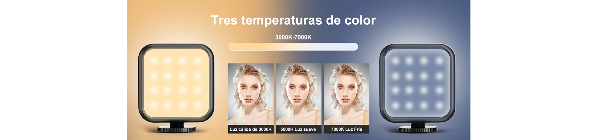 Dimmable portable light with 3 light modes. Professional fill light adjustable from 3000K (warm white) to 7000K (bright white). RGB light can be controlled from 10% to 100% brightness in 10% increments. Quickly adjusts color temperature with button press.